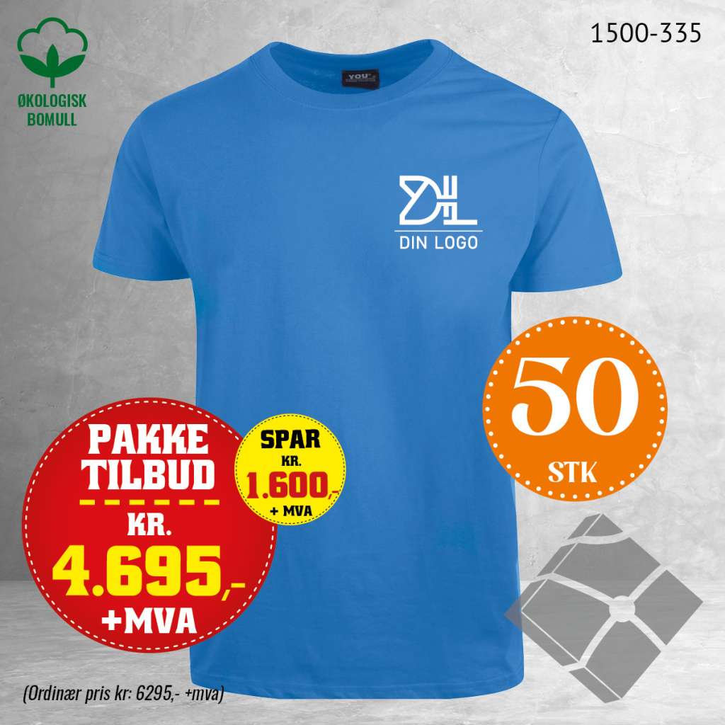 Denne pakken inneholder 50 stk t-skjorter i valgfrie størrelser.