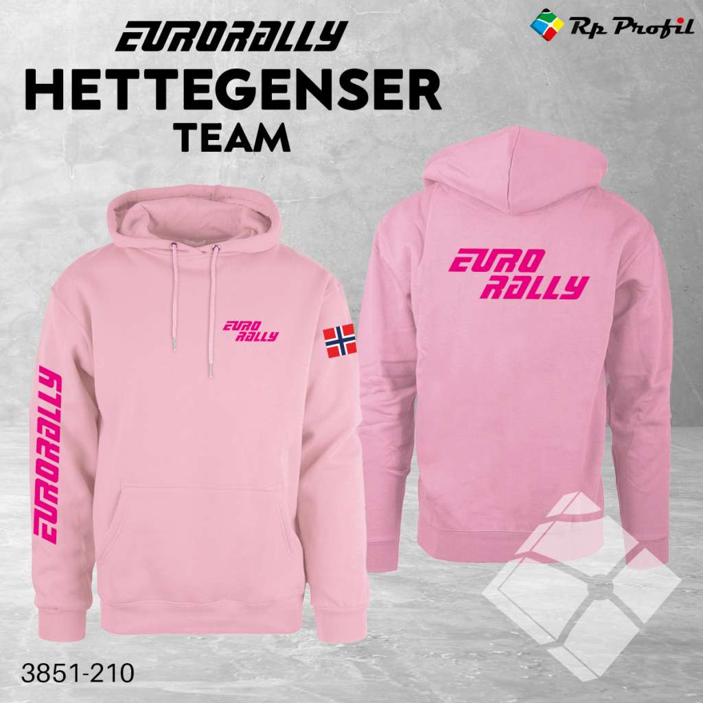 Knall rosa logotrykk på venstre bryst, rygg, arm og flagg på venstre arm.