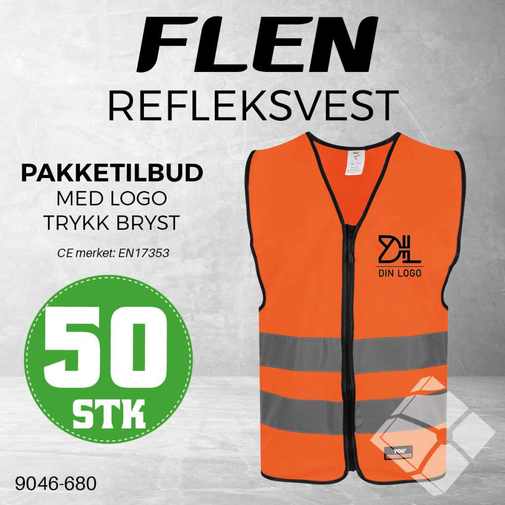 Pakkepris på populær vest med refleks og logotrykk på venstre side i front.